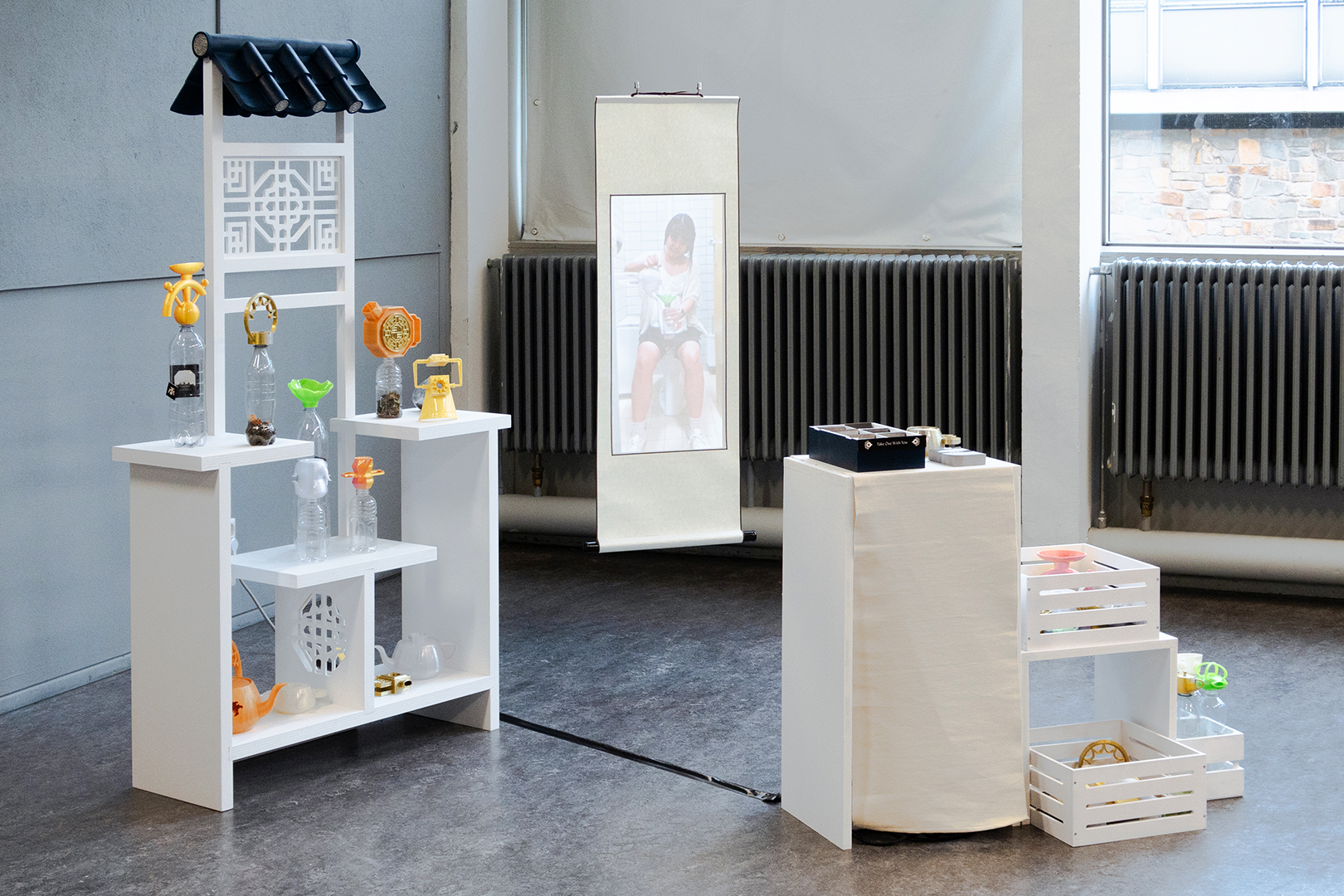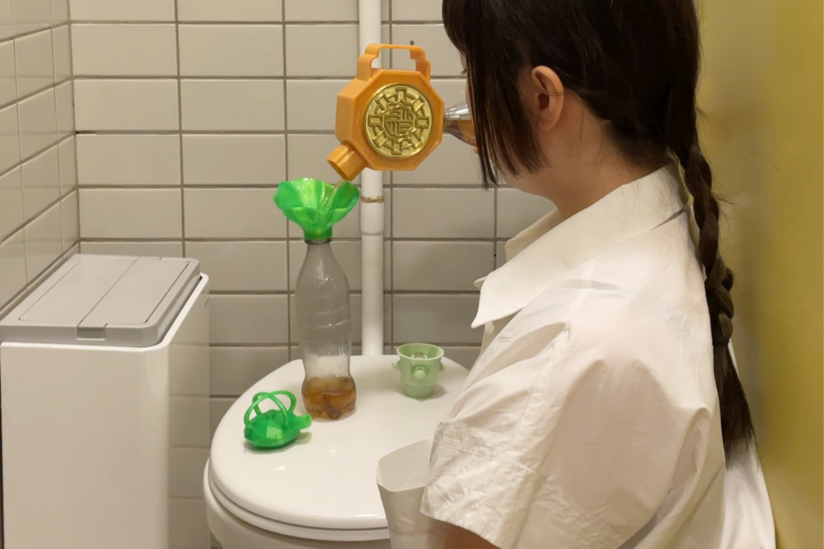 This project was initiated with the vision of designing a tea ceremony suited for modern times. I believe a modern tea ceremony involves enjoying the process with laughter, communication, and discovery rather than strict rules. We live in an era where diverse individual desires are expressed, and all methods should be respected. Why not bring teaware to the gym, brew tea in the bathroom, or hang a precious teapot on a branch while camping? I designed objects that match even these exaggerated scenarios.